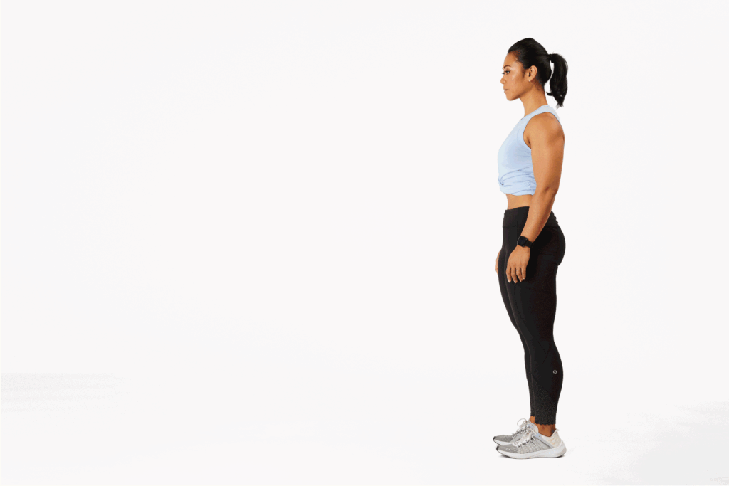 Bend the knees slightly and lift one leg 3–6 in off the floor.