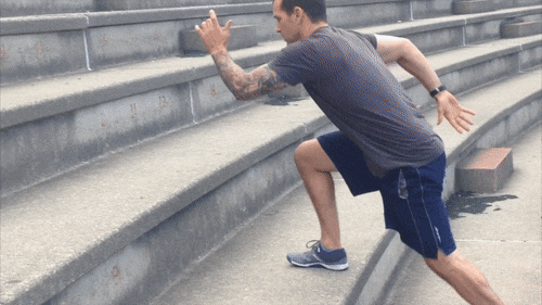 Taking the stairs two at a time and increasing speed to a running pace can further challenge the cardiovascular system and leg muscles.